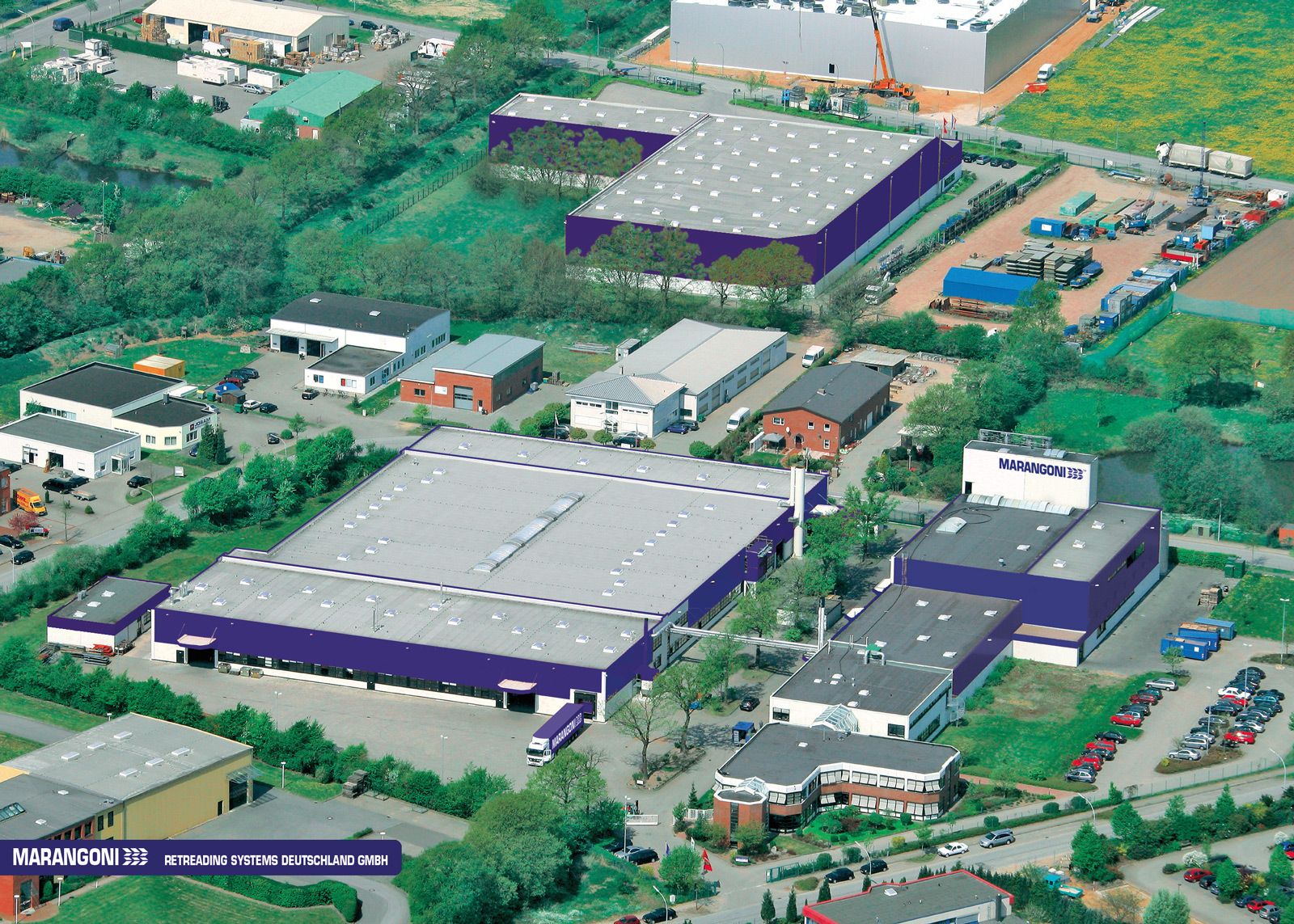 Gebäude zur Herstellung von Gummimischungen und Herstellung von Laufflächen zur Runderneuerung von Kfz- und Lkw-Reifen.